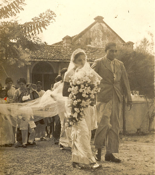 1942 - GrandpaAmmammaWedding - JSNicholas_giving_away_Ammamma - Jaffna